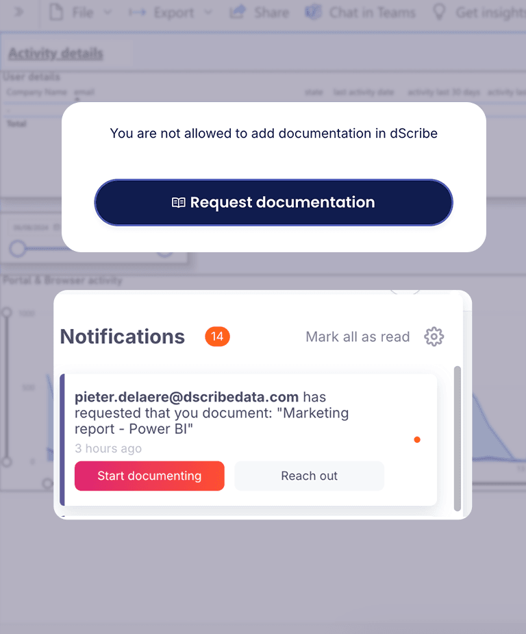 ✔ Usage insights in your documentation and BI reports